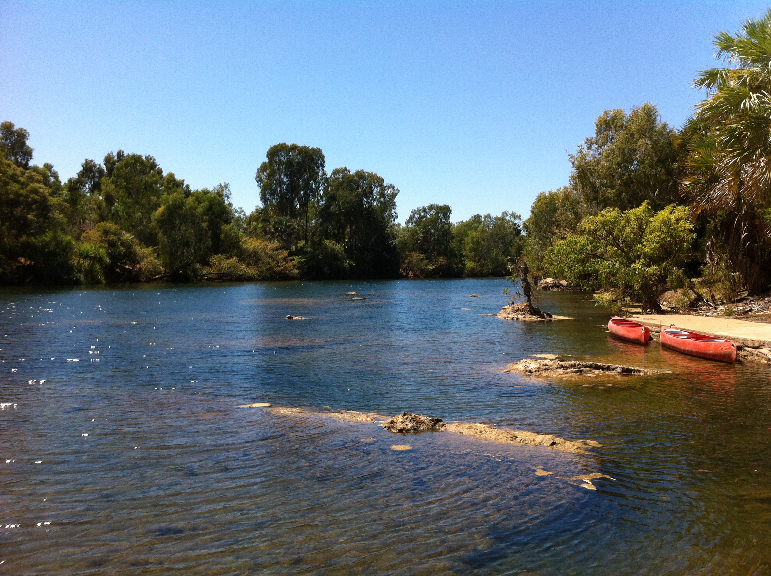 The Roper River and the Little Roper River are here at Mataranka. Everyone seemed quite confidant that the crocs never wander over into the springs. The Roper River swimming areas do have croc traps everywhere though – reassuring to know if they are there, they just might get caught before they eat someone!