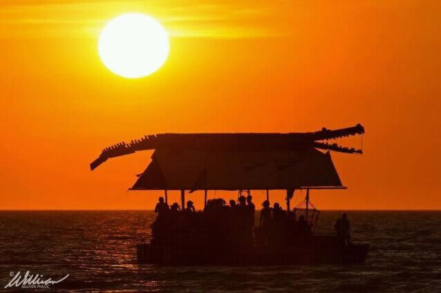 I am sure you have all heard of the famous Darwin “Beer can Regatta”. Well we can now say we know someone who has not only built a boat for it, but also taken out a prize in the Supper Boat class. Riitta and her friends built a boat a few years ago and took out first prize in the Supper class. It took over 30,000 beer cans and six months to complete. It is fully equipped with engines, a water cannon, a crow’s nest and bar. I reckon it’s pretty awesome. The ship is called the Grogmonster – what else could you call a boat made from beer cans. Check out the croc crow’s nest!