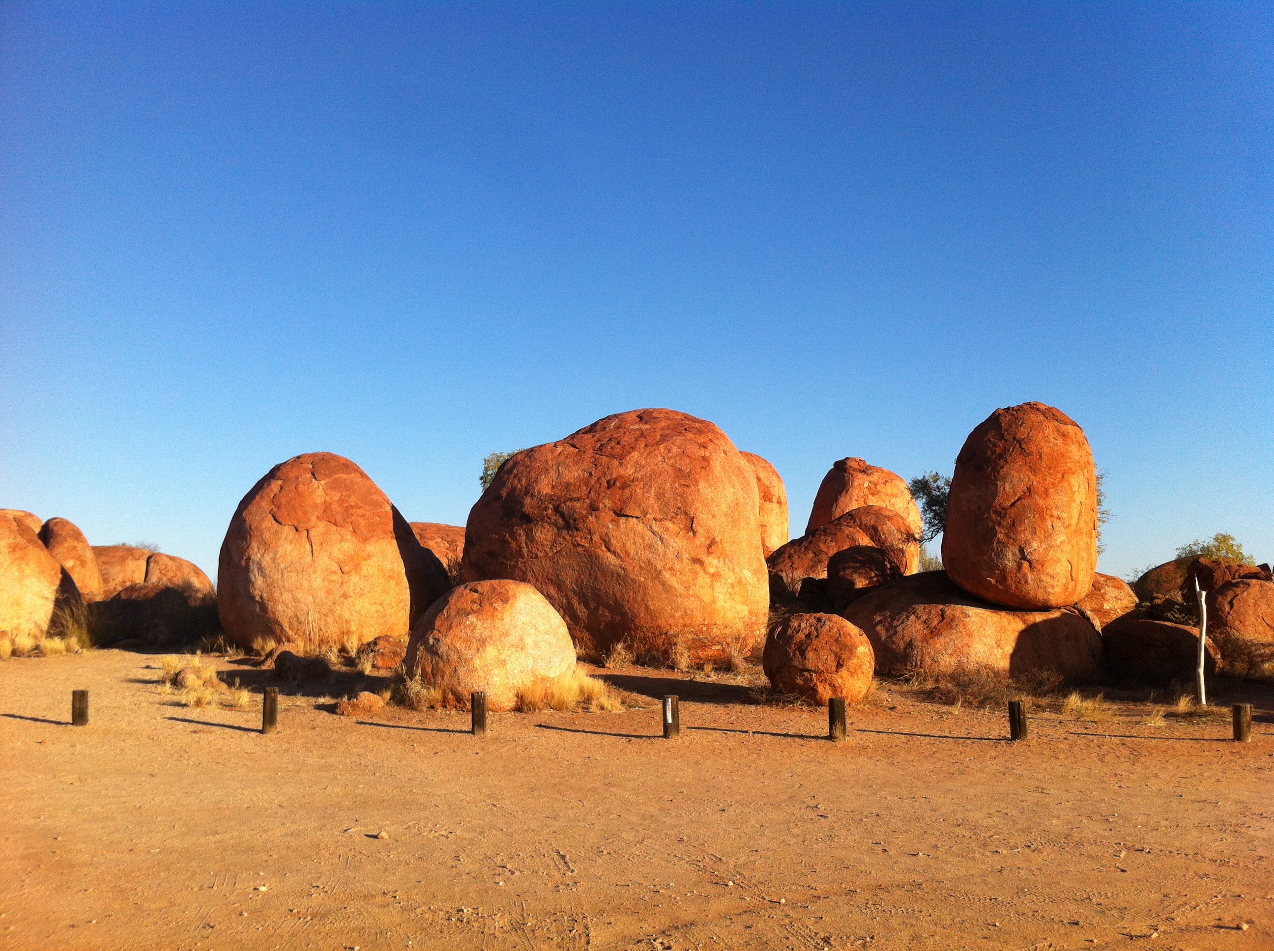 After dropping of the German Bike rider ( Sven), we spent two days looking around Alice Springs before moving on. Stooped at Devils Marbles on way down – if you look really close you can see Peter and me on top of rocks – yeah right, probably more mad Germans.