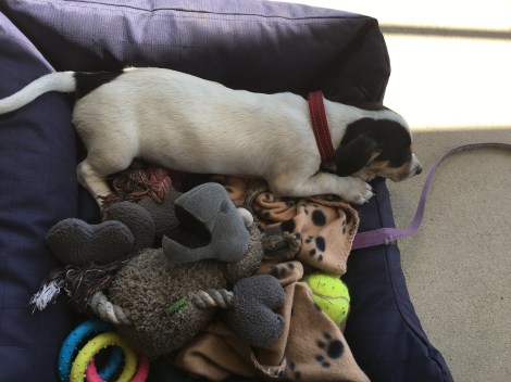 For those of you who are not aware we have a new member of the family – Russell. He is a foxy/ jack Russell cross all of 14 weeks old now. This is his first road trip and I must say he seems to be born to travel. Well behaved (mostly), loves the car and van, and does not mind being tired up when he has to.