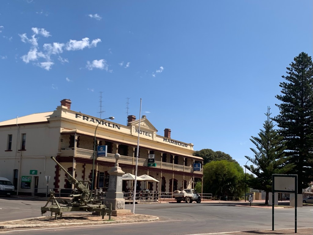 We have been staying in the small town of Cowell on the Franklin harbour for the past three days. Straying at an “almost free” campground within walking distance of town and along the foreshore It is ten dollars a night for a designated sire, about 30 sites all up with supplied water. The March flies are free. A very busy little campground – no bookings, first in best dressed.