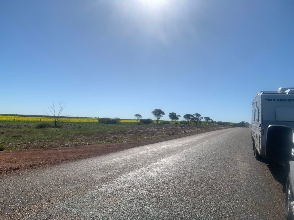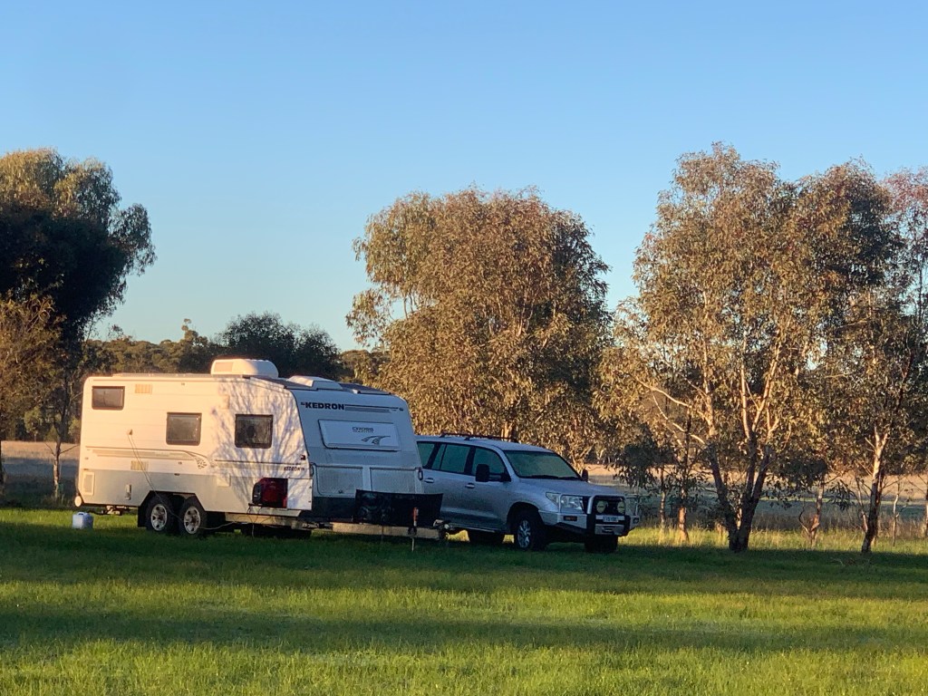 We have a Kedron Caravan – Queensland made by a family company. So not huge numbers on the road and fairly scarce in WA. While camped at New Norcia there were five vans and three of them were Kedrons. Of course we all got together to remark on such a rare event and rejoice in the recent state of origin win.